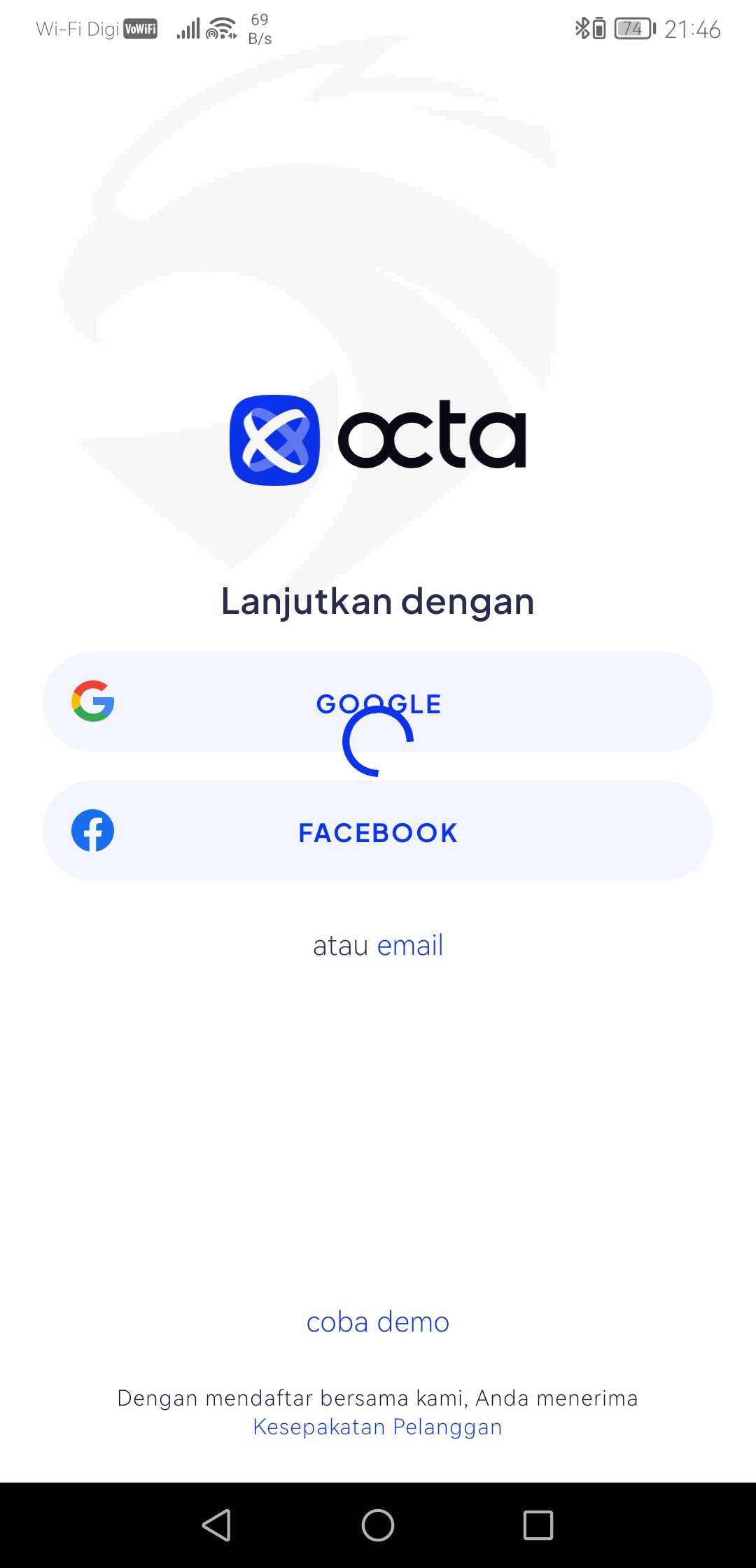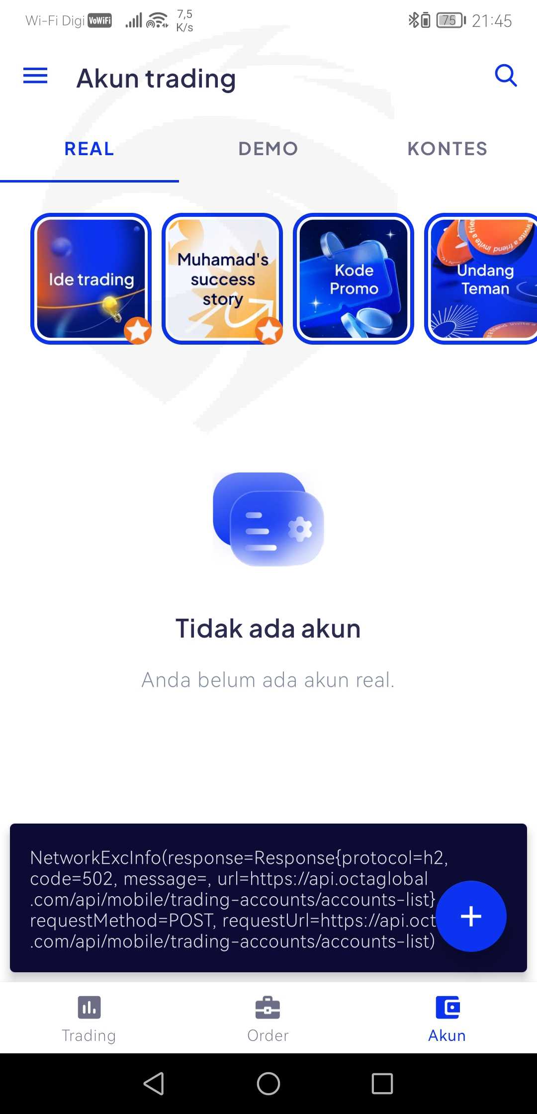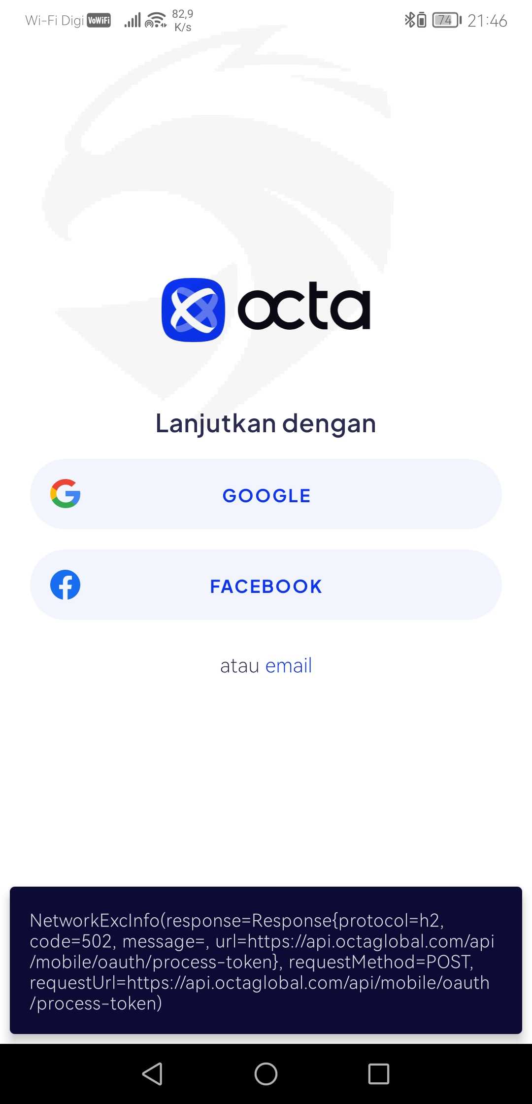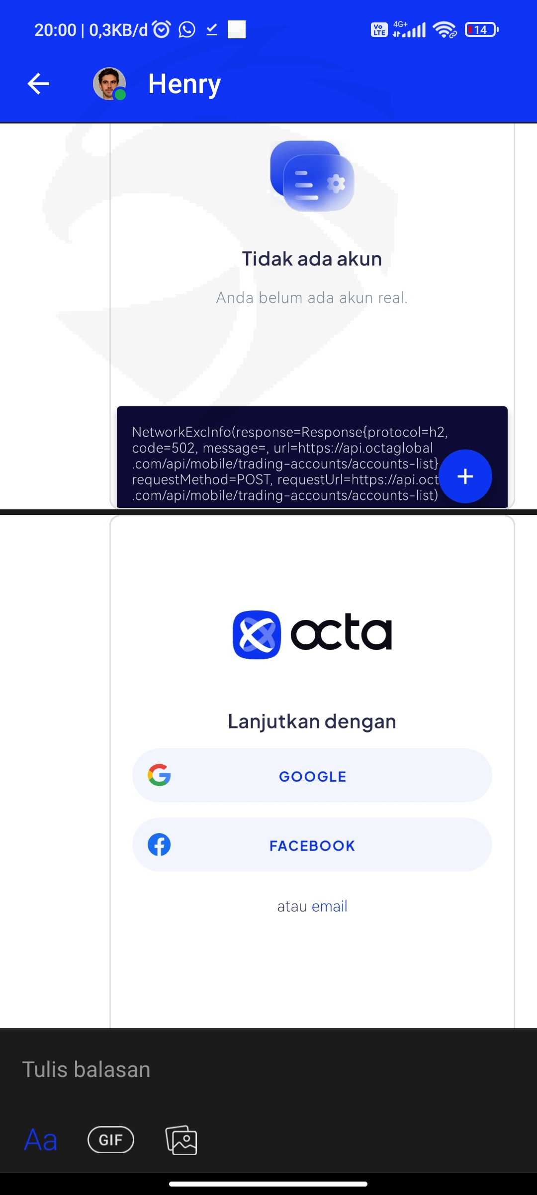 saya tidak dapat login ke dashboard Octafx