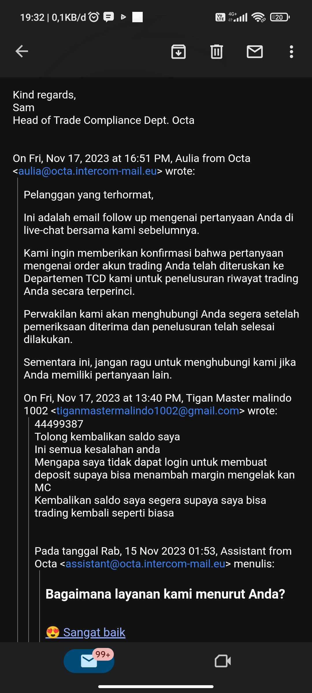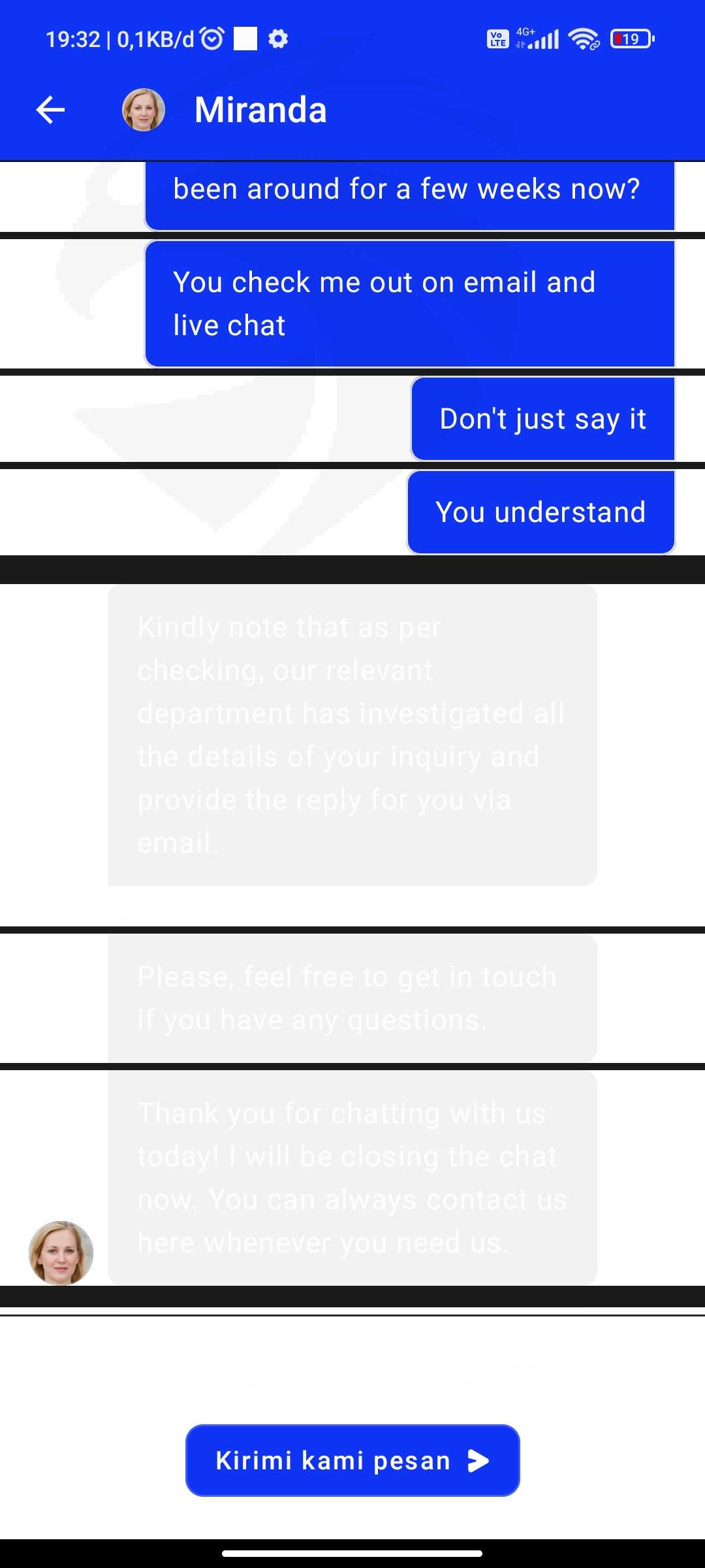 dan saya sudah mengirimkan email dan masuk ke live chat