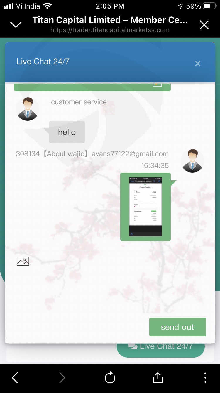 我的2800美元出金已经卡了8个月了,我已经交了税费和其他费用,但一直不能出。我把所有钱都投到这个平台了,但什么也拿不回来。出金的时候,他们要我缴税,我缴了,566美元。证据我都有,我想拿回钱。我为了盈利入金,但他们把我的钱全吞了,说我一天内交易多次,所以账户被冻结,根本就是无稽之谈。过了一段时间,他们把我的账号从Titan转到云商汇鑫有限公司。 他们把所有的东西都改了,还吞了我的钱。 请帮我出金。
