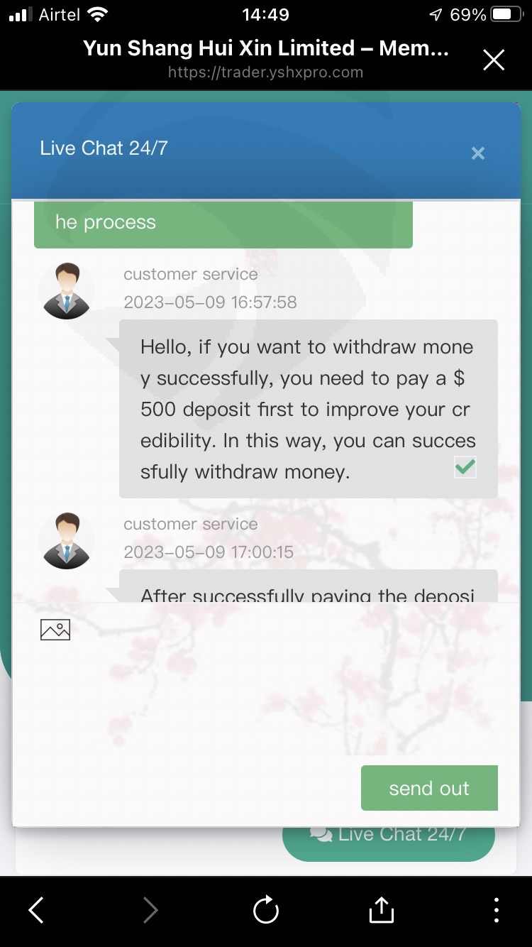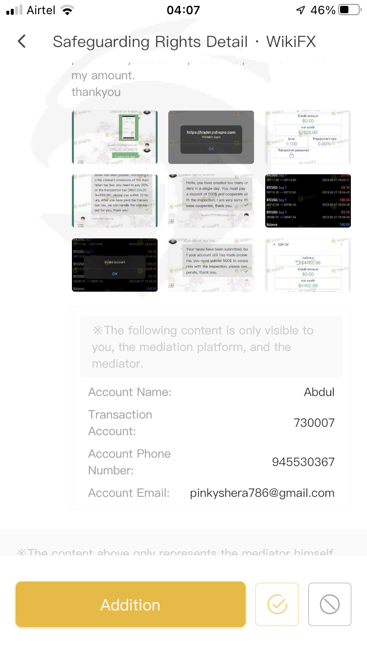 This one is last transfer as 566$ they asked me for tax to withdraw my amount, and I deposit. After they say you traded many times in a single day , your account has problem. So deposit more 500$ for inspection. But I refused to deposit more and they say we will not withdraw without deposit. After some time they say we will give you withdraw after sometime , but now they prohibit my account