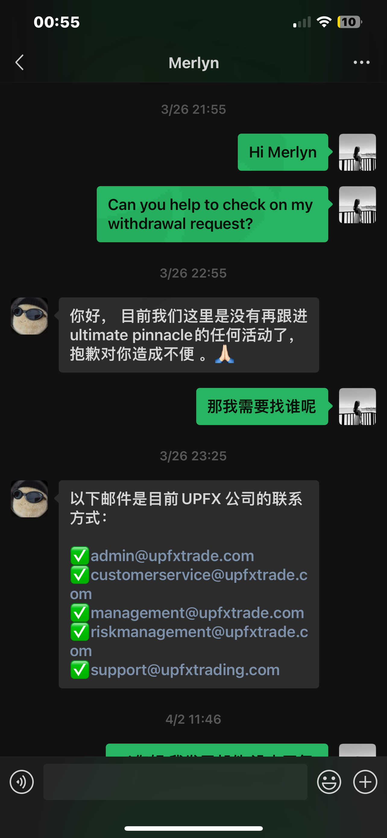 I have diligently followed all withdrawal procedures outlined by UPFX, including submitting necessary documentation and complying with any verification requirements. However, despite my efforts, I have not received any satisfactory resolution from UPFX's customer support team.
