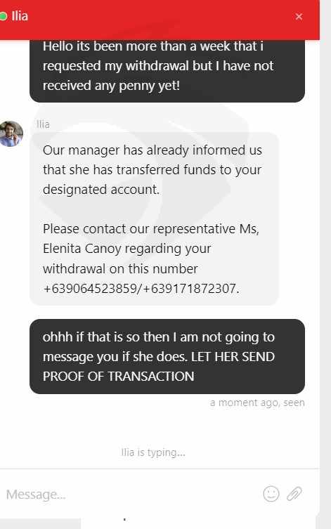 以下是值得注意的一些细节:1. 出金问题:我母亲作为账户持有人,申请出金一直未释放。Ventezo的官方电子邮件确认出金请求已完成,但资金仍未释放。2. 客服声明:Ventezo的客服确认菲律宾的地区经理已经转账。但我们的银行账户并未收到任何资金,这就导致了系统更新和实际转账状态之间有出入。3. 缺乏问责制:反复跟进未能解决这些问题,引发了对Ventezo在菲律宾运营的诚信和透明度的担忧。我们甚至通过WhatsApp向Ventezo的负责人发送了要求信,但没有回复。