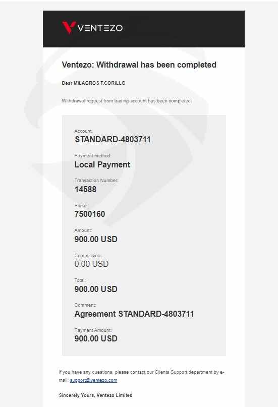 In behalf of my mother, a ventezo client as well, compelled to bring to light a significant concern regarding Ventezo and its current operations under the management of their Philippine Country Manager. Here are the alarming details:1. Withdrawal Issues:The said account holder my mother, have been facing non-release of her withdrawn funds.Despite receiving official email confirmations from Ventezo stating that the withdrawal requests have been completed, the funds remain unreleased.2. Chat Support Claims:Ventezo's chat support has confirmed that the Country Manager in the Philippines has already transferred the funds.Yet, no funds have been received in our bank accounts, creating a discrepancy between their system's updates and the actual transfer status.3. Lack of Accountability:Repeated follow-ups have not resolved these issues, raising concerns about the integrity and transparency of Ventezo's operations in the Philippines. We even send demand letter to the owner of Ventezo via whatsapp messenger but to no avail. No replies.