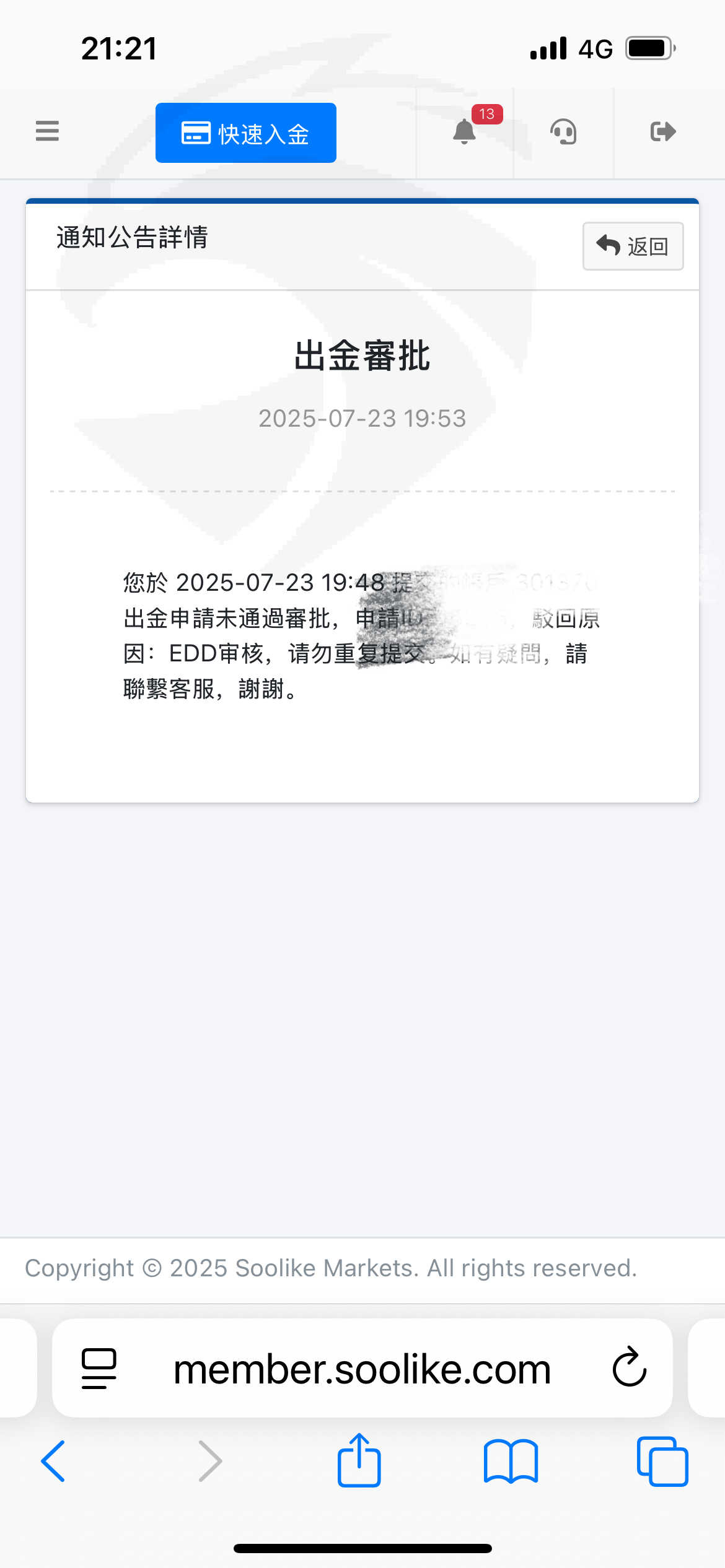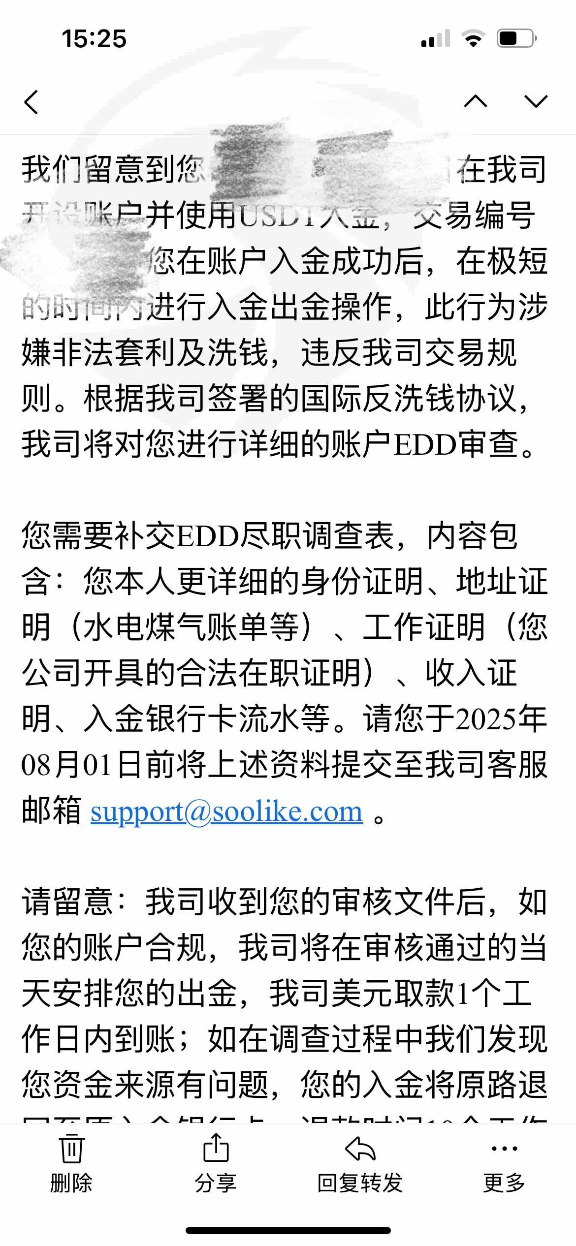 已经交易有利润,不给出金,以反洗钱需要审核为理由,一直驳回出金问了办理开户的销售人员一直不回话后台客服也是个摆设,问了没回话