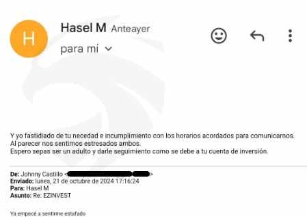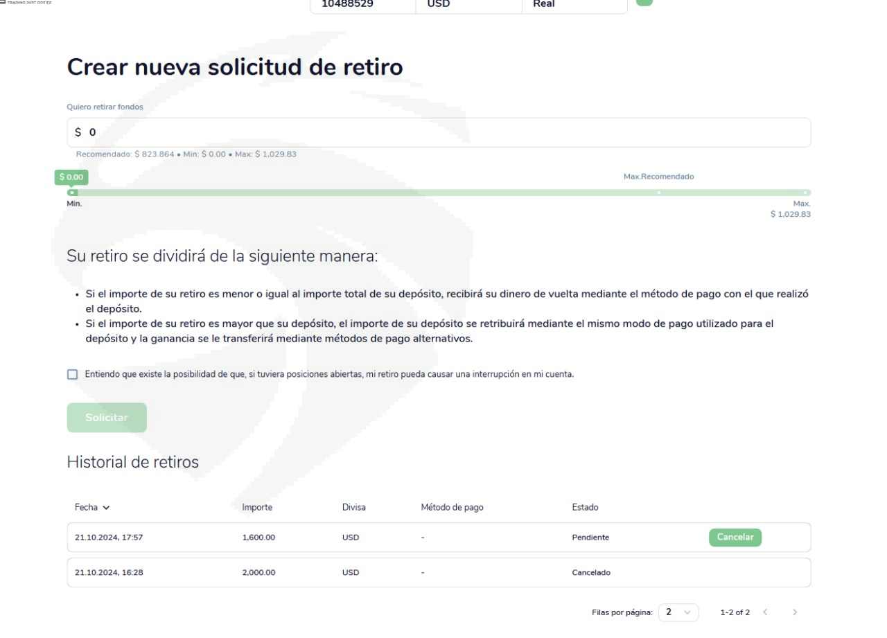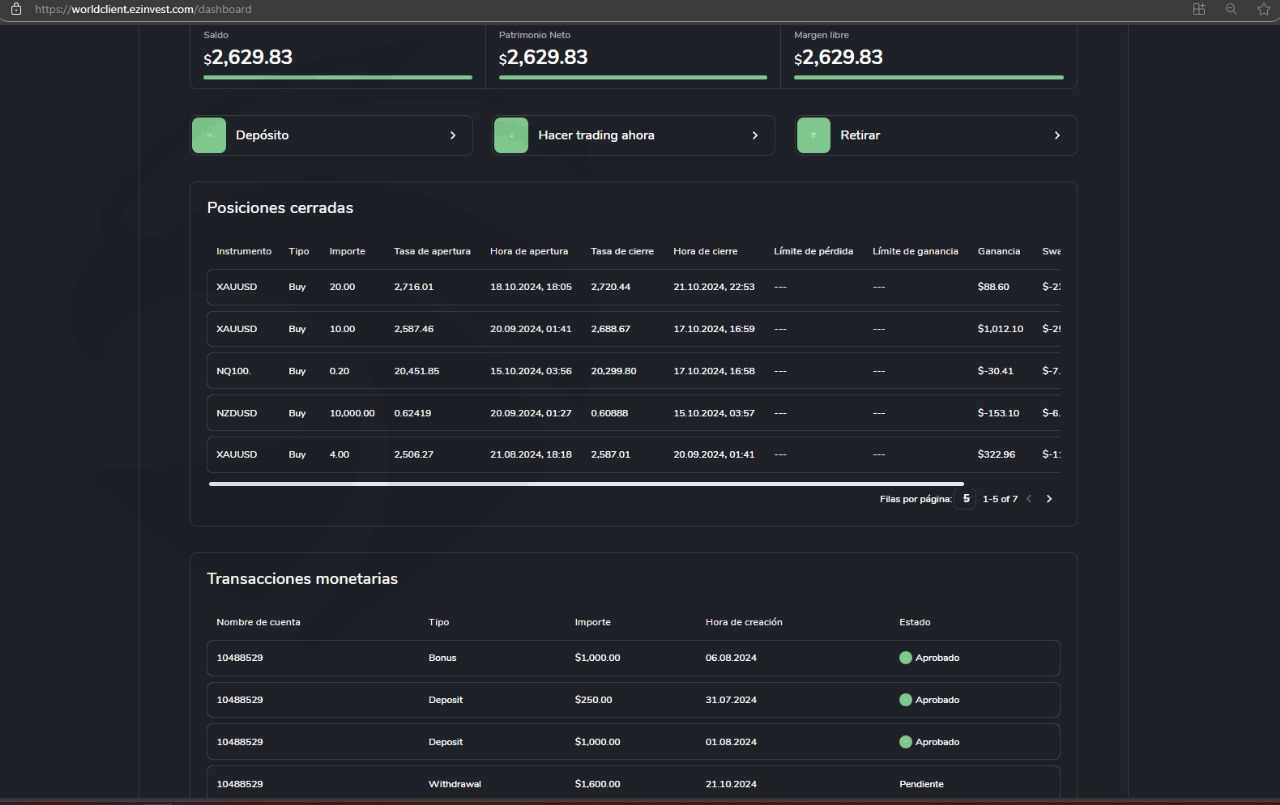 La siguiente es para informar que esta empresa es falsa, es puro scam. Empece en Julio de este año queriendo aprender a invertir y me dijeron que necesitaba 250 usd para comenzar, el cual, le deposite, luego me solicitaron 1000 usd y como esta promocionado como seguro, procedi a depositarle tal suma tambien, cosa de la que me arrepiento. hasta el sol de hoy, no he podido retirar, siempre me saltan con una mentira nueva. dicen que no puedo retirar si tengo ordenes abiertas, las cierro y solicito y me cancelan la solicitud de retiro y vuelven, ellos mismos a abrir ordenes sin mi autorizacion, e incluso han intentado sacar dinero de mi tarjeta. Me gustaria saber si hay algo que pueda hacer para recuperar mi inversion, ya que no he perdido, incluso en la pagina de ellos dice que tengo 2.6k dolares, cosa que se que es mentira. adjunto imagenes para ver si sirve de ayuda. Muchas veces incluso se expresan mal por la solicitud. aqui las pruebas.
