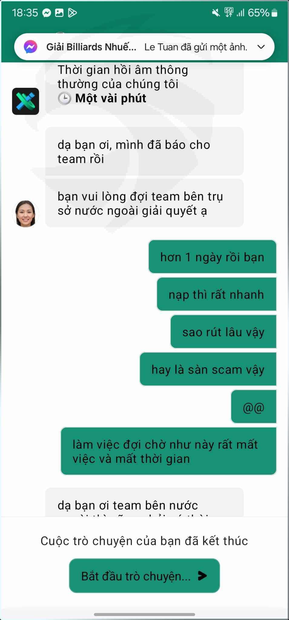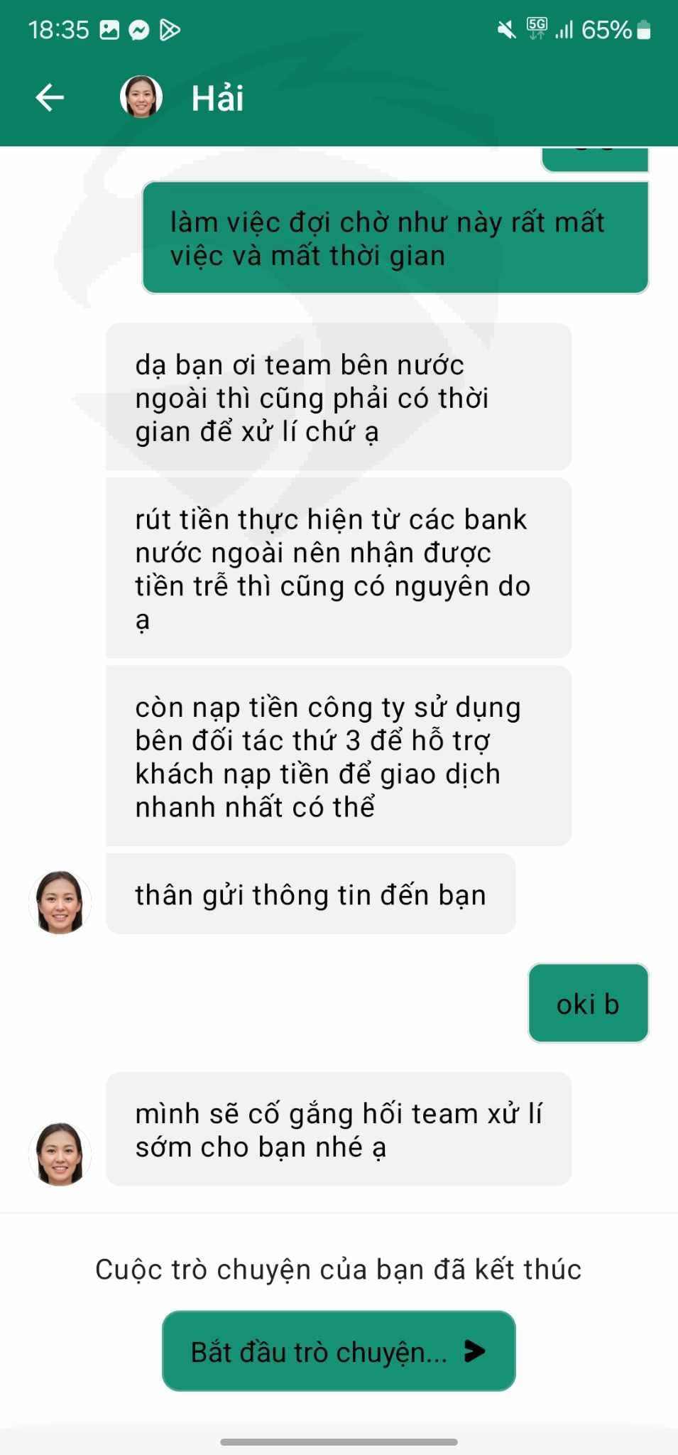 Tôi liên hệ support nhưng vẫn cứ nhận được yêu cầu chờ đợi. Tôi rất hoang mang và lo sợ mất tiền, không biết phải đợi bao lâu nữa.