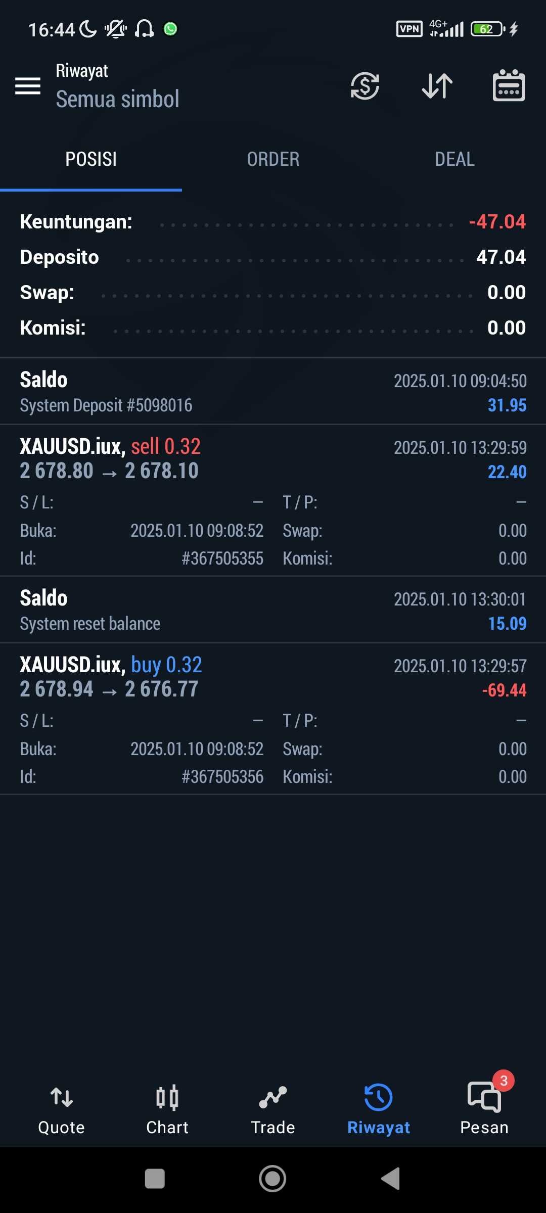 我对这家经纪商的服务非常失望。我经历了订单平仓价的不合理差异。我以 2677.11 的价格平仓买入仓位,但经纪商实际上以 2676.77 的价格平仓,尽管当时的市场状况稳定,没有出现重大波动。这导致我的余额不公平地减少,甚至出现亏损。当我提交投诉并附上证据时,我的投诉被忽略了,只给出了滑点等一般原因,而没有试图详细解释或证明此事。作为一家声称使用市场执行系统的经纪商,价格执行的透明度和准确性非常重要。然而,这次经历表明,这种做法对客户不利。我不向任何人推荐这家经纪商。如果你优先考虑诚实和透明度,你应该寻找另一家更值得信赖的经纪商。
