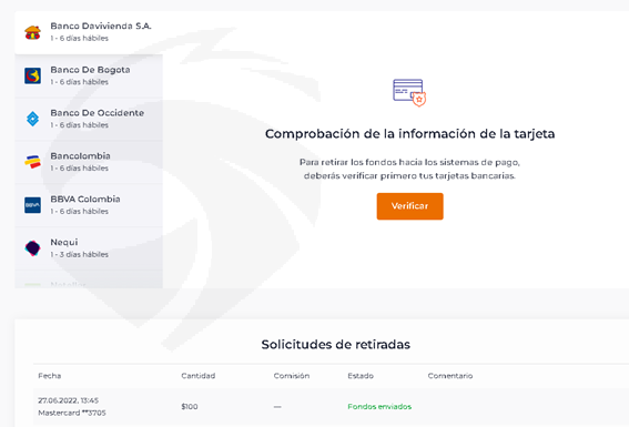 我试图提款,现在平台要求我验证所有过去曾存款的卡,也就是说,他们要求我提供 4 年前我账户上的卡。已被删除或者只是我丢失了。这是一个骗局,因为那些骗子不给我任何其他选择来提取我的钱。