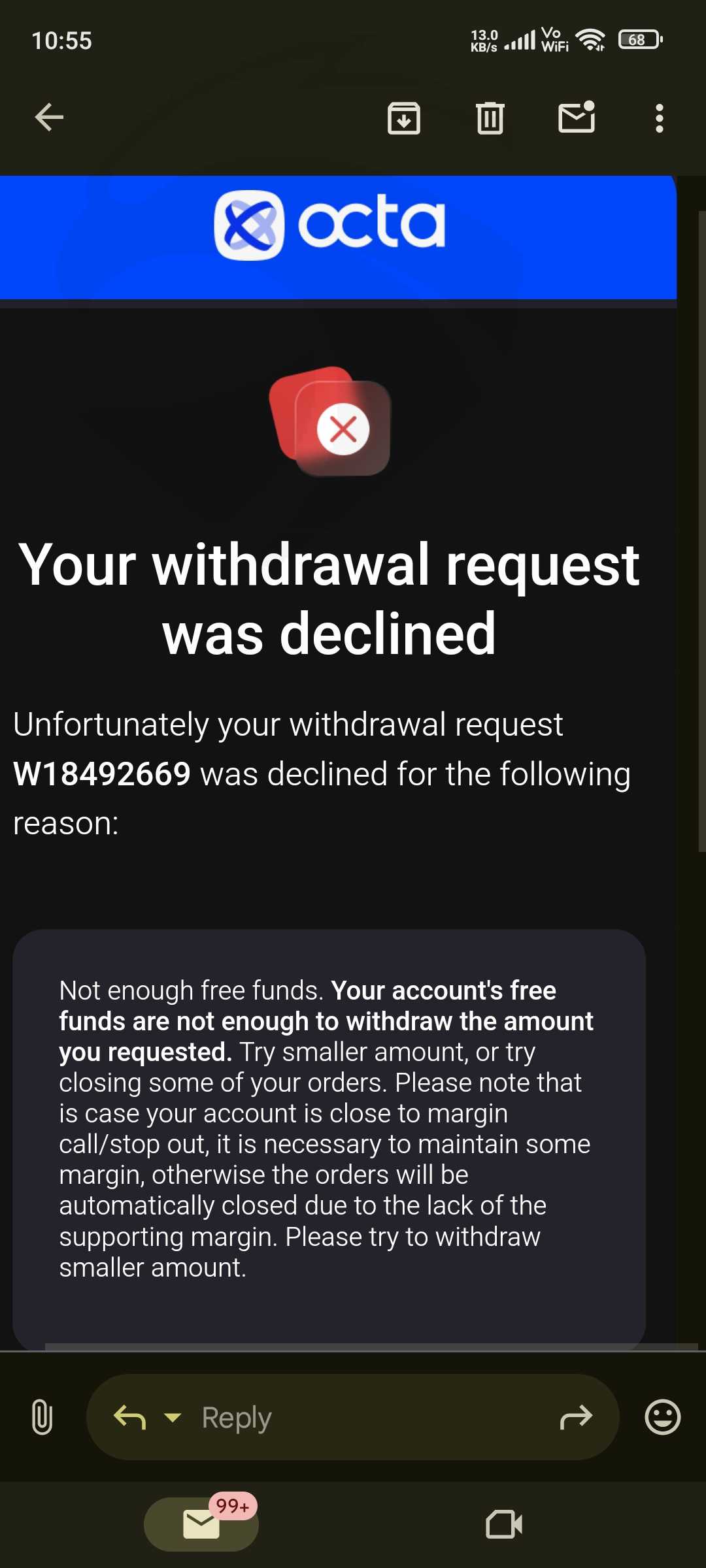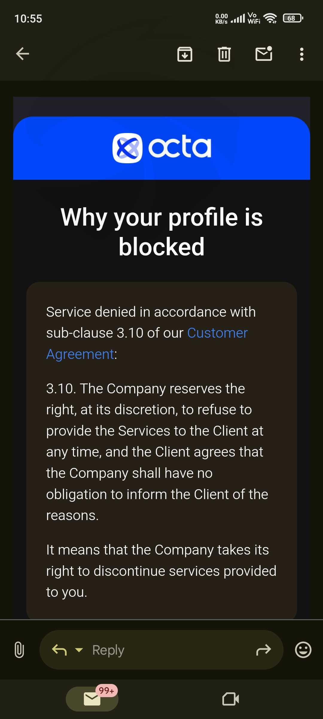 Octafx 封锁了我的账户并拒绝我的提款