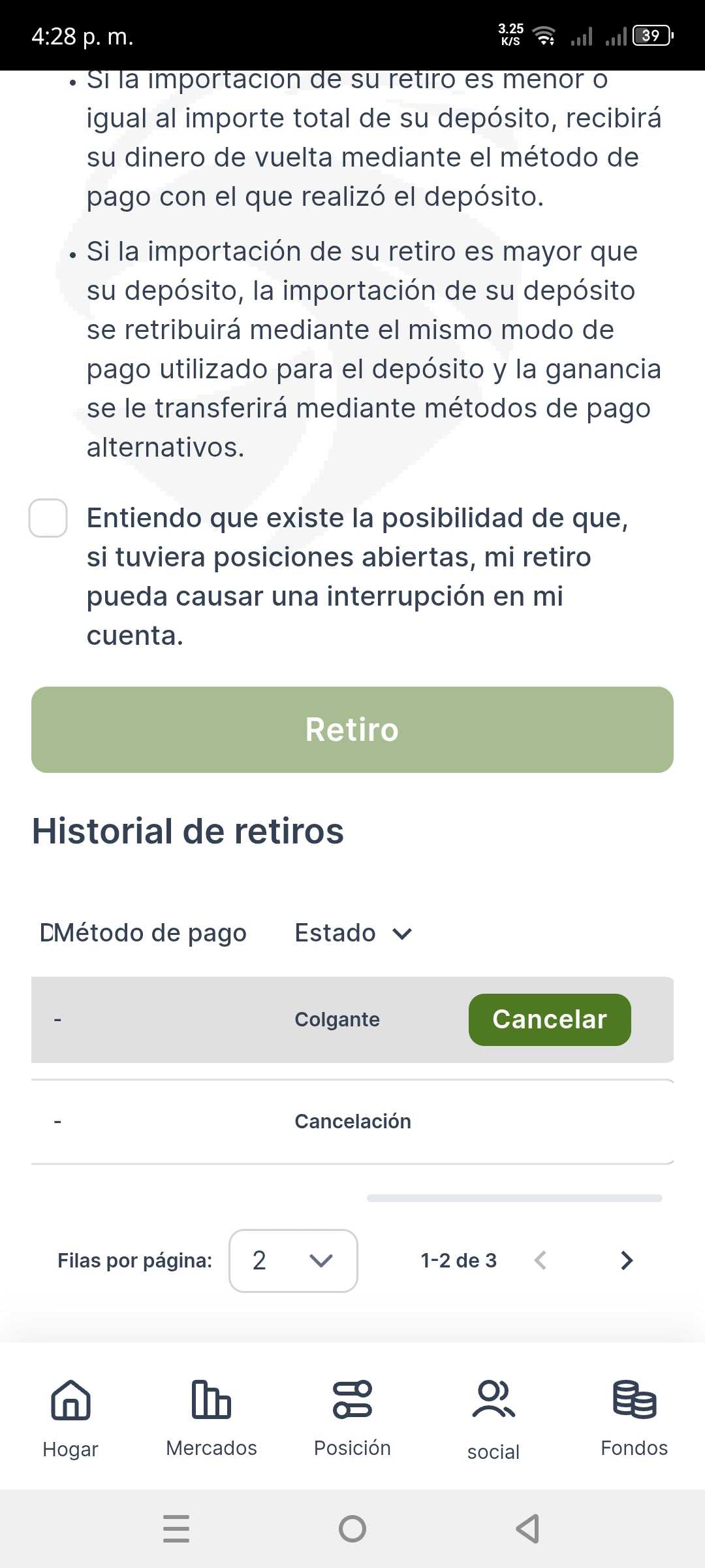 Quisiera me resolvieran porque hace 14 Días pedí mi retiro de mi capital y aún llevo esperando q me lo aprueben