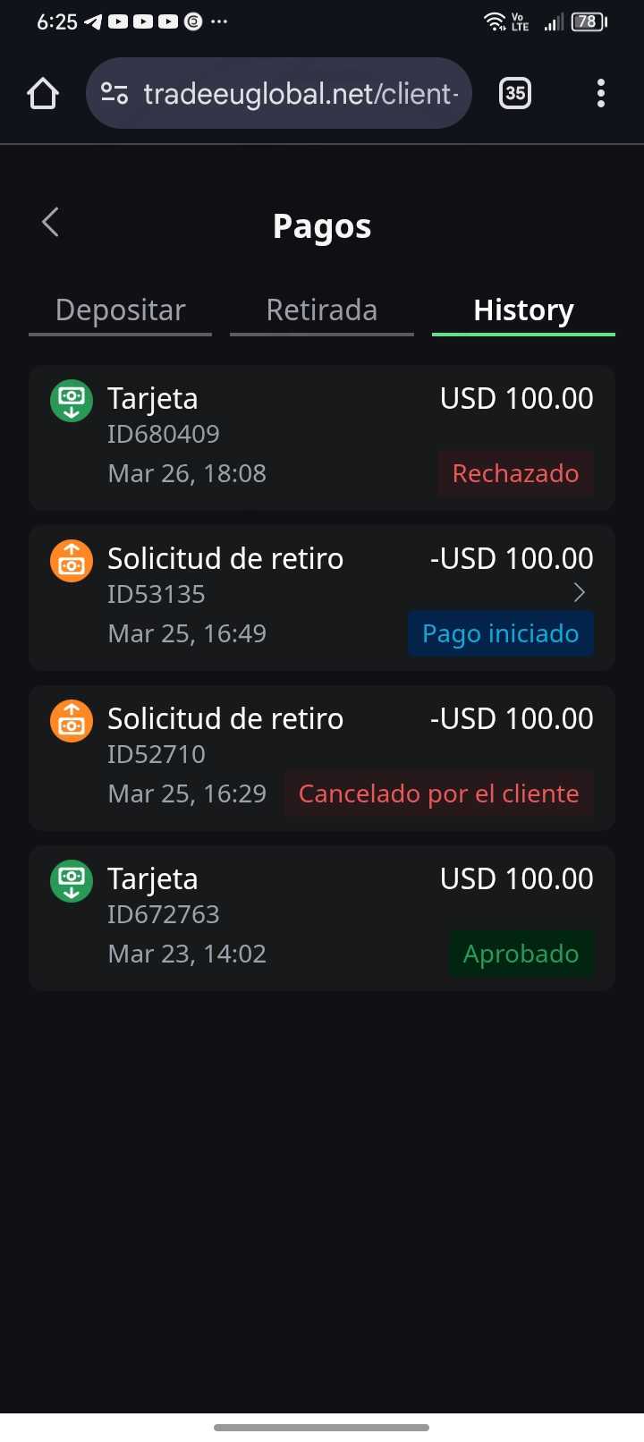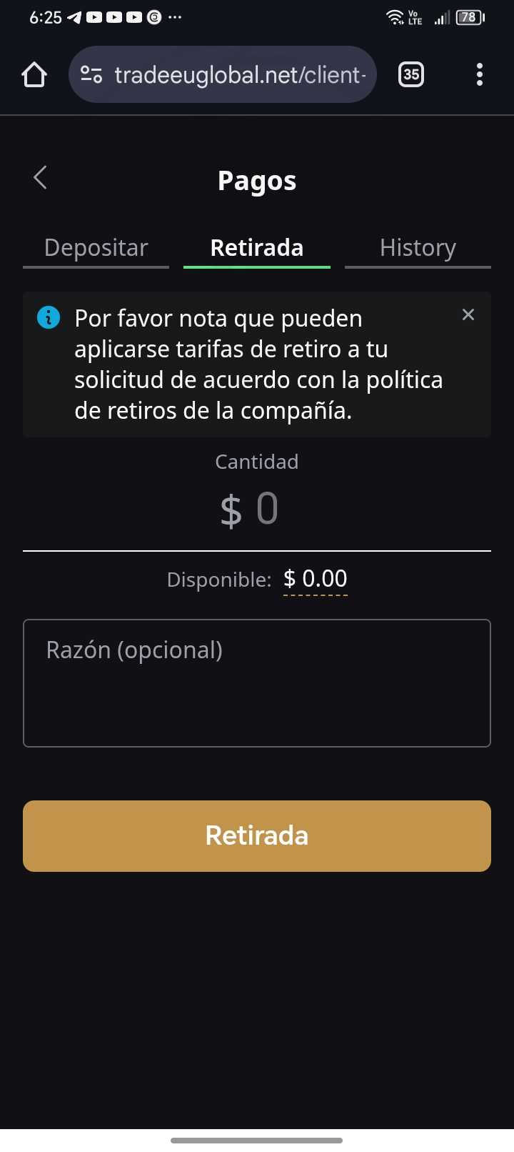 大家好,我想通过这种方式来分享我使用这个平台的经验。在了解到该平台不可靠后,我决定将我的资金从该平台转移出去。现在我已经等待7天了,我的提款才从平台存入。一位公司顾问与我交谈,向我提供提款指示,但他首先试图说服我,我没有提款,然后他告诉我,为了提款,我需要去存款并再次添加我的卡详细信息,我告诉他我没有带卡。我的银行建议我禁用该卡以避免卡被克隆,现在我刚去银行带了我的银行账户证明,我的银行给我发了一份打印的合同,现在我正在将其上传到其他文件,但它立即拒绝了我。我绝对想夺回我的100美元。