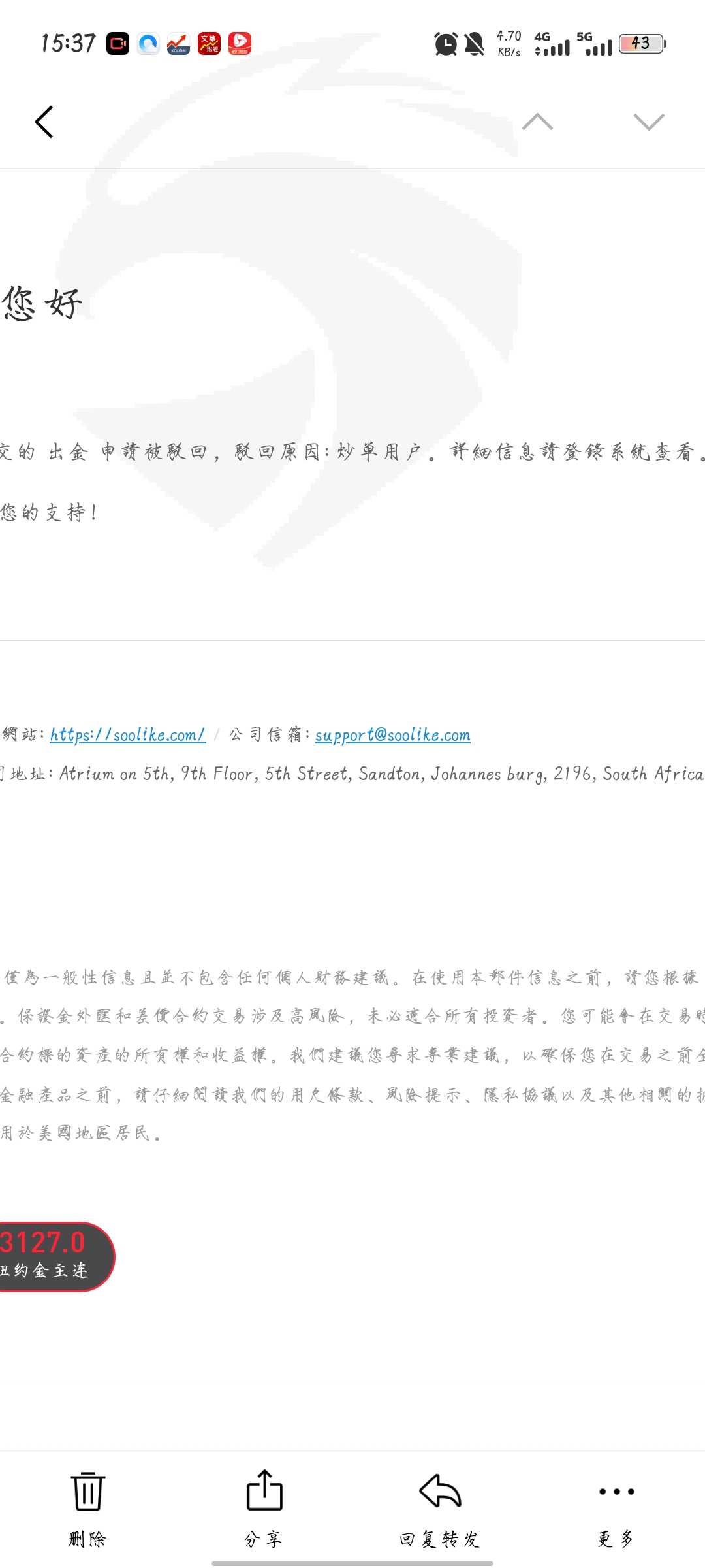 无法出金