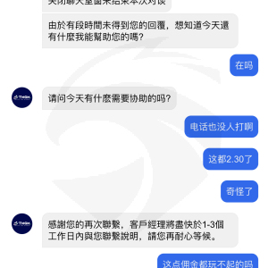 TMGM 回复澳大利亚后台账户里没钱了,之前的也都给客户出过了。