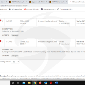 电子邮件:devdashekhar@gmail.com 问题描述:我在2022年2月8日情人节促销期间订阅了Genius bot,但它仍然显示未订阅,而且用户仍然无法在MT4账户中转移资金,用户是自上周以来无法使用IPC自动交易功能,请查看并解决他的问题。 TXID(存款问题): 85c117395b034ec06a7f206143a1763ad0fb66aa66ba4455bb2bd05ae2f18939 IPC钱包地址:TArXKFcHgi9K1GsaxuZad1MUuZcNMUihsj