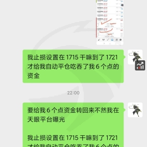 我止损设置在1715干嘛到了1721才给我自动平仓吃吞了我2个单6个点的资金