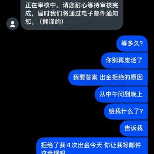 提现17000美元被拒绝,下午分四五次尝试提现也均遭拒,理由为:内部控制。客户经理服务态度极差,简直有恃无恐。从业多年首次遭遇此等状况。