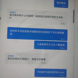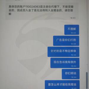关于您的账户 1100****3的投诉,我们第一时间反馈给相关部门进行深入调查,对于此账户的赠金事宜,相关部门已经安排您的代理联系您为您解释说明。 同时, 若您需要参与平台赠金活动,建议您可以打开最新官网链接重新添加新的可接受赠金账户即可,感谢您的理解。