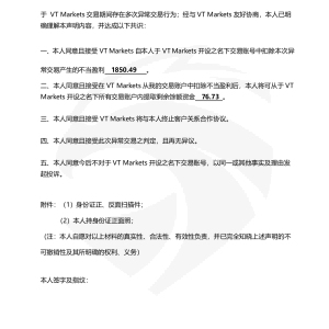 VT Markets 回复澳大利亚该客户是外部对冲异常客户,我们皆已经通知到销售跟进并依照销售团队指示处理。