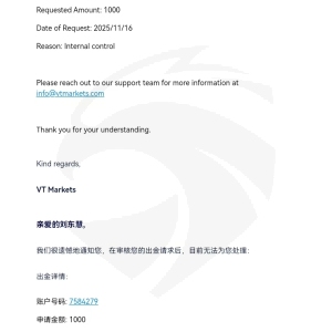 VT Markets 回复澳大利亚客户目前已经可以正常提交提款申请,此前是在调查客户是否涉及非法交易和核实身份信息,因此暂时限制了提款