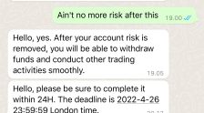小心这位自称位于英国并使用伦敦时间、区号为 +1 的香港经纪人。因为我无法取款,这个经纪人让我重新存款,我以1016美元的价格完成了......我成功后,他们说他们必须再做一次,因为这是错误的方式。