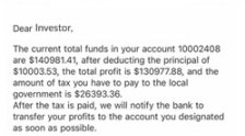 免费获得的最好建议是不要在这些人身上浪费钱。在再次致电他们的客服并再等待58分钟后,我被告知要先纳税,然后才能取出我的资金。我现在已经发出投诉,希望当局和 Fintrack/org 能像其他人一样拿回我的钱并帮助伸张正义!谢谢!!
