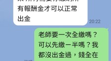3/7开始安排第一次出金,现在在3/9问自称是卷商的经理,出金事情,对方都以很多人安排出金为理由,然後在3/9晚上开始传讯息都不读不回