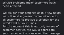 到现在为止我还没能把钱取出来,我已经交了税但是钱还没有到。我们收到了来自 Vistova 执行团队的新消息,称他们将向所有客户发出一般性通知,以提供提款解决方案。由于出现问题,他们只会通过电子邮件回复。这是一场噩梦