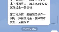 11月初,加入顾晶莹先生领导的宝信投资团队。郭振荣,一个帮助世界的复利计划。 Vistova作为一名交易员,以陈经理为客服,我个人投入了新台币510万元来操作原油和黄金差价合约。书上的每一次操作都盈利了,老师还一直声称可以每天随时提款。我喜欢它。每个人都可以随意提取。我两次提现一共170万。然而,当我第三次提款时,却被告知资金被冻结,无法提现。我必须支付500万投资成本的1/2,即250. 0,000,000才能提款。我对欺诈行为感到震惊,并决定不再付款。我只是想提取剩余的340万本金。对方不同意,坚持要求我支付250万的押金。他们说只要我交了押金就可以取款。可以将费用连同押金一起提取...有一堆借口阻止提取,欺诈行为卑鄙!