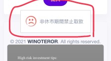 我在12月中旬投资量化交易winoteror的平台、在1月24日要出金时确发现禁止取款讯息、当时我问兰溪投顾服务员,他说要在27号才能取款,结果26号当天我被退出服务群组也被封索才惊觉到有问题了,今天27号了还是无法出金也找不到那位服务员了