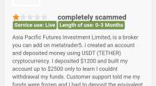 当我在这家交易公司工作时,他们对了解我的需求和我的实际财务资源几乎没有兴趣。如果您没有无限的银行账户,则应避免使用此交易商。他们积极鼓励我在我已经亏损很多的时候投资更多的钱。其中一位经常使用攻击性和贬损性语言。然而,最近一项资产索赔/com 追回行动暴露了 ASIA PACIFIC并导致我的投资被退回。这个平台是有史以来最糟糕的交易公司。