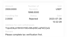 我用 USDC 平台进行交易并从朋友那里贷款。他们让我支付 20% 的余额税和 20% 的账户管理费,然后他们要求提取余额的 50% 以作为担保,以便能够出金,并说已存入我的账户。但他们没有这样做。一共是 580 美元。我有所有证据。现在我的钱在我的账户中,但无法出金,我能做些什么来拿回我的资产呢? 现在出金申请正在等待审核,怎样才能收回资金呢?请回答我