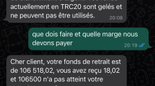 我确认不可能像其他证词一样在休会后提取资金,一位年轻女性在 facebook 上与您联系,并在 2 周后鼓励您投资(一开始是在 starekco 的 25000 欧元) BKYHYO .并且一旦我们想提取我们的资金,该服务要求我提供 30% 的保证金,因此无法提取资金。