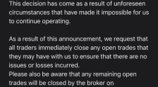 尊敬的交易者们,我们很遗憾地通知您, FxWinning Limited从 2023 年 6 月 22 日星期四起将不再提供服务。由于意外情况所导致我们无法继续运营并做出此决定。鉴于此公告,我们要求所有交易者立即关闭他们可能与我们进行的任何未平仓交易,以确保没有问题或损失。另请注意,交易商将于 2023 年 6 月 21 日星期三13:00 GMT+3 关闭所有剩余的未平仓交易。此外,我们敦促所有商家尽快从他们的账户中提取任何剩余资金。我们的团队将在此过程中协助您,并确保及时有效地处理所有提款。提款将持续到 2023 年 6 月 30 日星期五。考虑到上述情况,从 2023 年 6 月 21 日星期三开始,将无法处理任何新存款。对于给您带来的任何不便,我们深表歉意,并感谢您在此困难时期的合作与理解。如果您有任何疑问或需要进一步的帮助,请随时联系我们的支持团队。