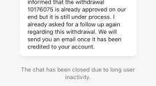 我大约 12 天前提款,目前该流程仍在等待中。我联系了支持人员,他们说提款流程已获得批准。现在我已经等了支付经理大约10天了,我不知道该怎么处理这些人。操作最多应该在24小时后完成。