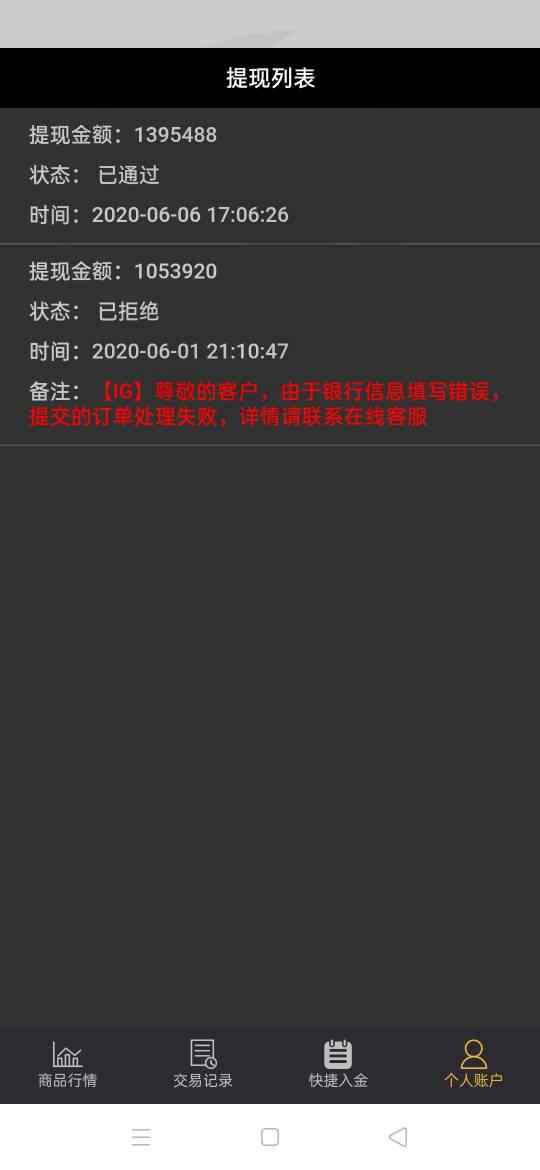 提现不了!平台客服联系不上。提现不了,交了保证金,隔夜利息,提现手续费,到现在还要交美国花旗银行认证金,说没开通国际业务,入金怎么没入到花旗银行,出金要经过花旗银行!有这样的正规平台吗?6月6号提现申请通过了,到现在一分钱都没到帐!