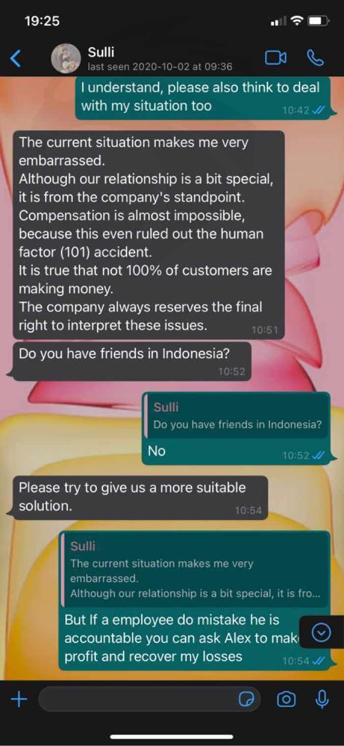 I was trading with lonny prime since March 2020. I met a Chinese girl named Sulli on tinder and she introduced me to the world or forex. I was impressed then she asked me to deposit money in real account and get as many subordinates you can get so that we can help people in this pandemic. I bought 5 subordinates and myself. On September 3, 2020 their Analyst Alex traded 101 lots USDJPY and burned all my funds 57000$ and now they are not responding and they manipulate mt4 as well as WhatsApp.