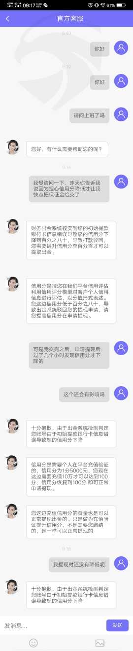 2020.11.1日在此平台中进行买卖外汇交易,等到我账户余额上数目增长后,我想要申请提现,之后平台客服以我填写银行卡号有误,不给提现通过,让我继续缴纳保证金,还承诺最后保证金会一起退还的,之后我交完保证金和银行卡、身份证照片后再申请出金,客服又将我信用分降低,以信用分低为由再次将我提现申请驳回,后又告诉我月底结算才可以给我出金,但后来再联系客服,客服不再回复我任何消息,我再次申请了提现,也一直不给处理处理,都是在审核中,前后共以这种诱导方式骗取我17万多本金,恳请相关部门可以介入调查,严查他们这些行为恶劣的平台,让他们还我们血汗钱!