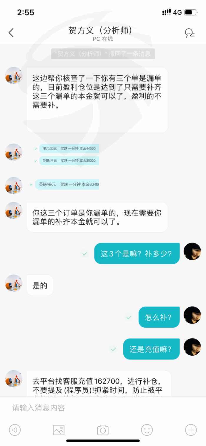 同样的遭遇,都是说分析师一对一带单,百分之百赚钱