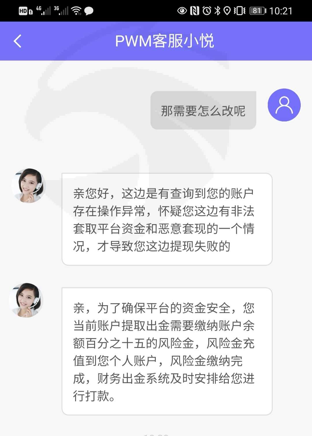 客服说银行卡信息不对,需要缴纳百分之十五风险金方可更改信息,否则没法出金,骗子公司,纯属诈骗