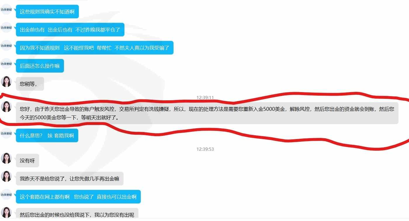 先是以中奖诱骗入金35000元人民币(5000美金),然后各种理由不给出金 ,想要出金 再入金5000美金(我不敢)。