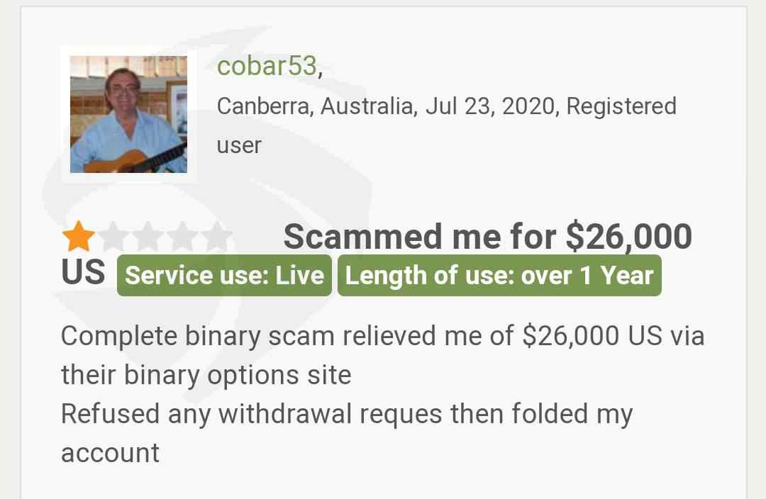 该经纪人拒绝向客户提款并关闭了他的账户,从而骗了他 26000 美元。远离。