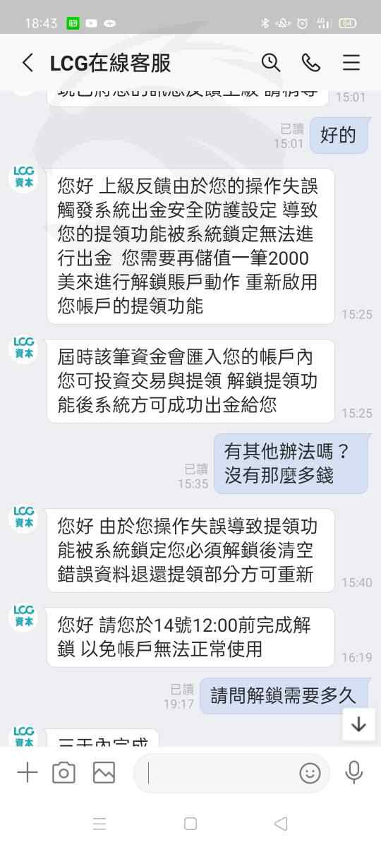 LCG資本平台無法出金