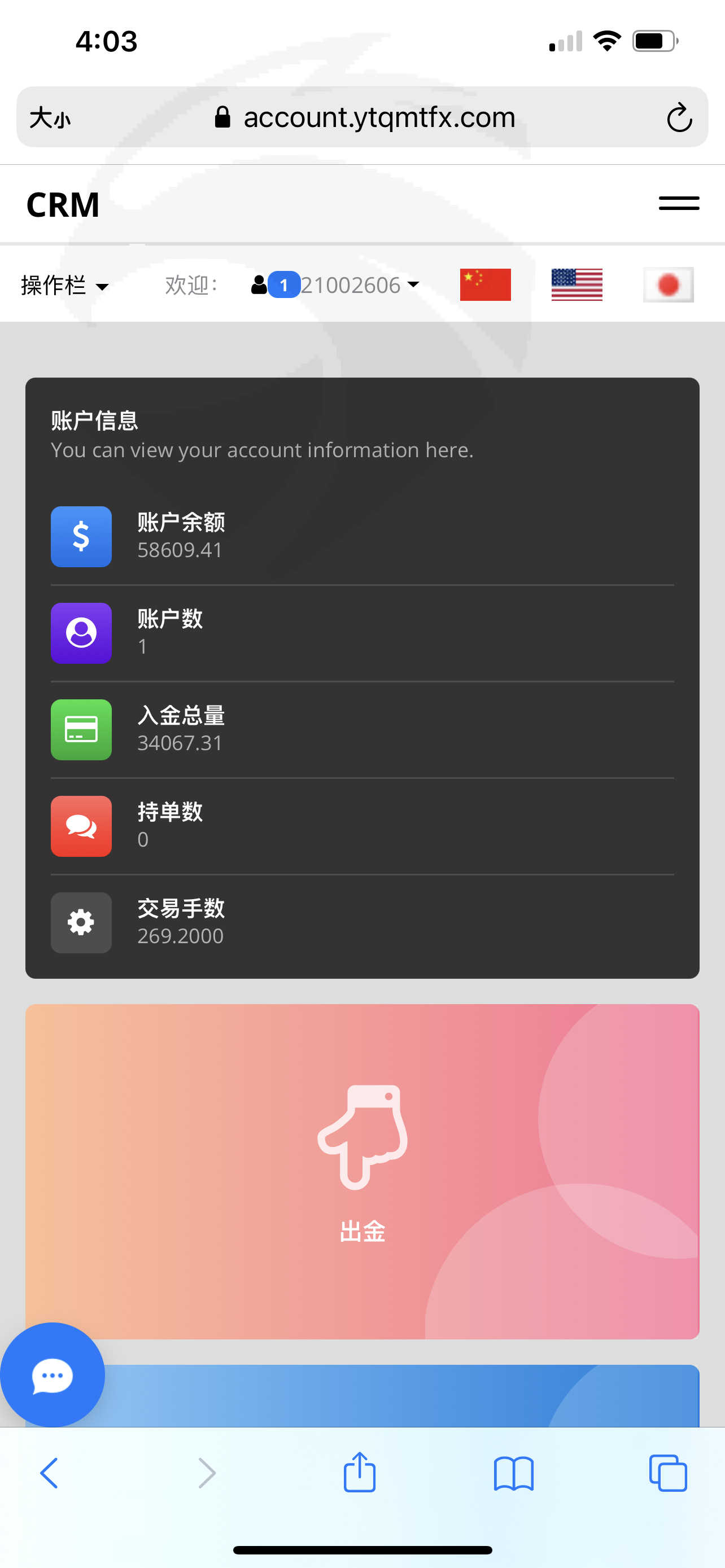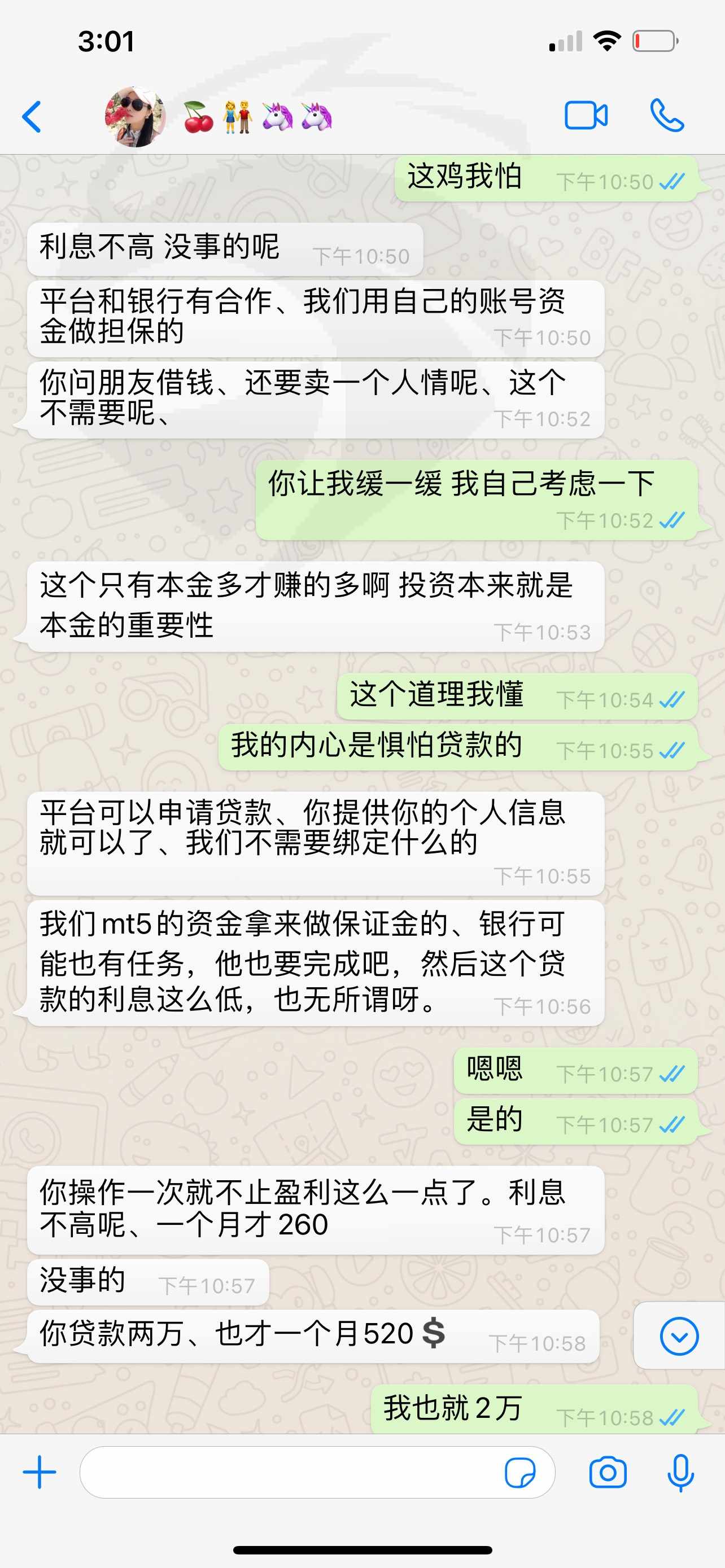 一个多月前有一个中国女孩,在中国抖音平台上,我们互相关注后她私信我 ,玩黄金外汇 介绍了这个平台! 耐心教我入金, 每次都收获不少 。说自己的姑姑有团队研究走势 跟着他赚大钱 !!半个月前系统发email给我 说我的账户可以贷款20000!这是第一个坑,诱导我贷款 后来我才知道,这贷款需要14天内还清贷款还有利息!只怪自己初出茅庐 ,当我昨天还清的时候申请出金。客服说需要我3倍的流水才能出金!出金全部作废,然后这女孩于今晚失联了!
