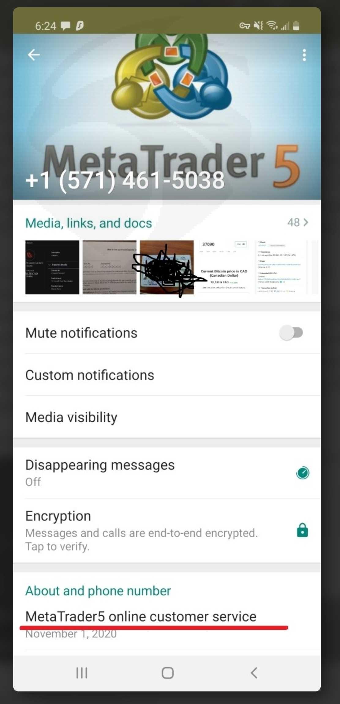 She put me through to a "broker" whose Whatsapp account had the MetaTrader 5 logo on its display picture and introduced themselves as "Customer Service".