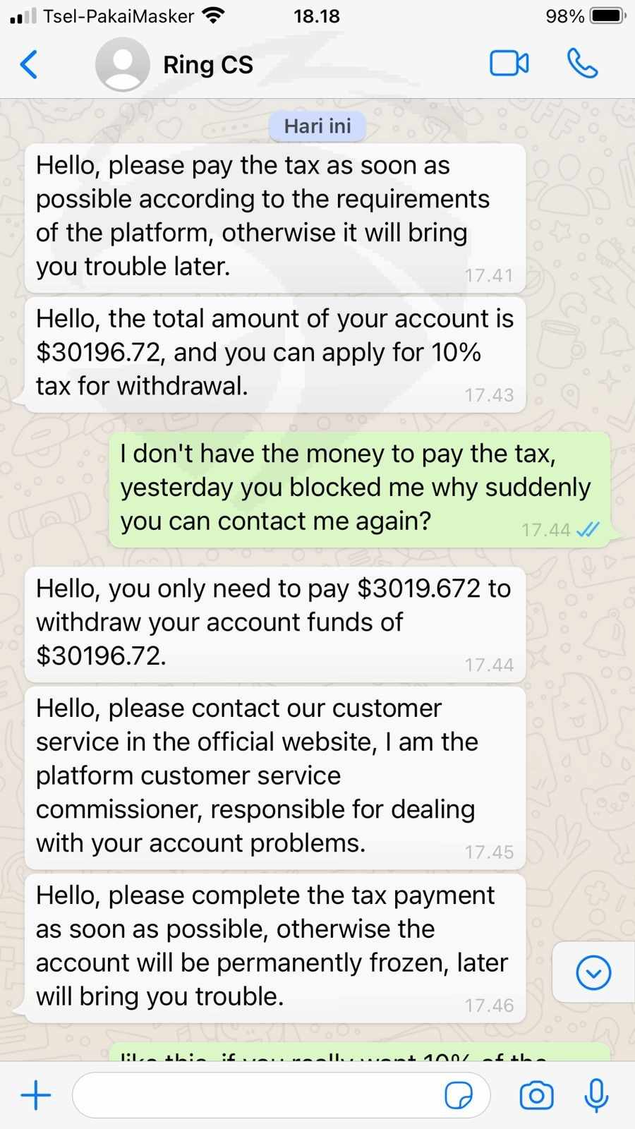 Mereka akan memperdaya kalian saat kalian ingin melakukan penarikan mereka akan meminta 20% dari total saldo yang kalian miliki dengan alasan pajak, itu hanya bagian dari cara mereka untuk menipu semakin banyak saat kita panik, jangan percaya pada broker ini, menjauhlah dari broker ini