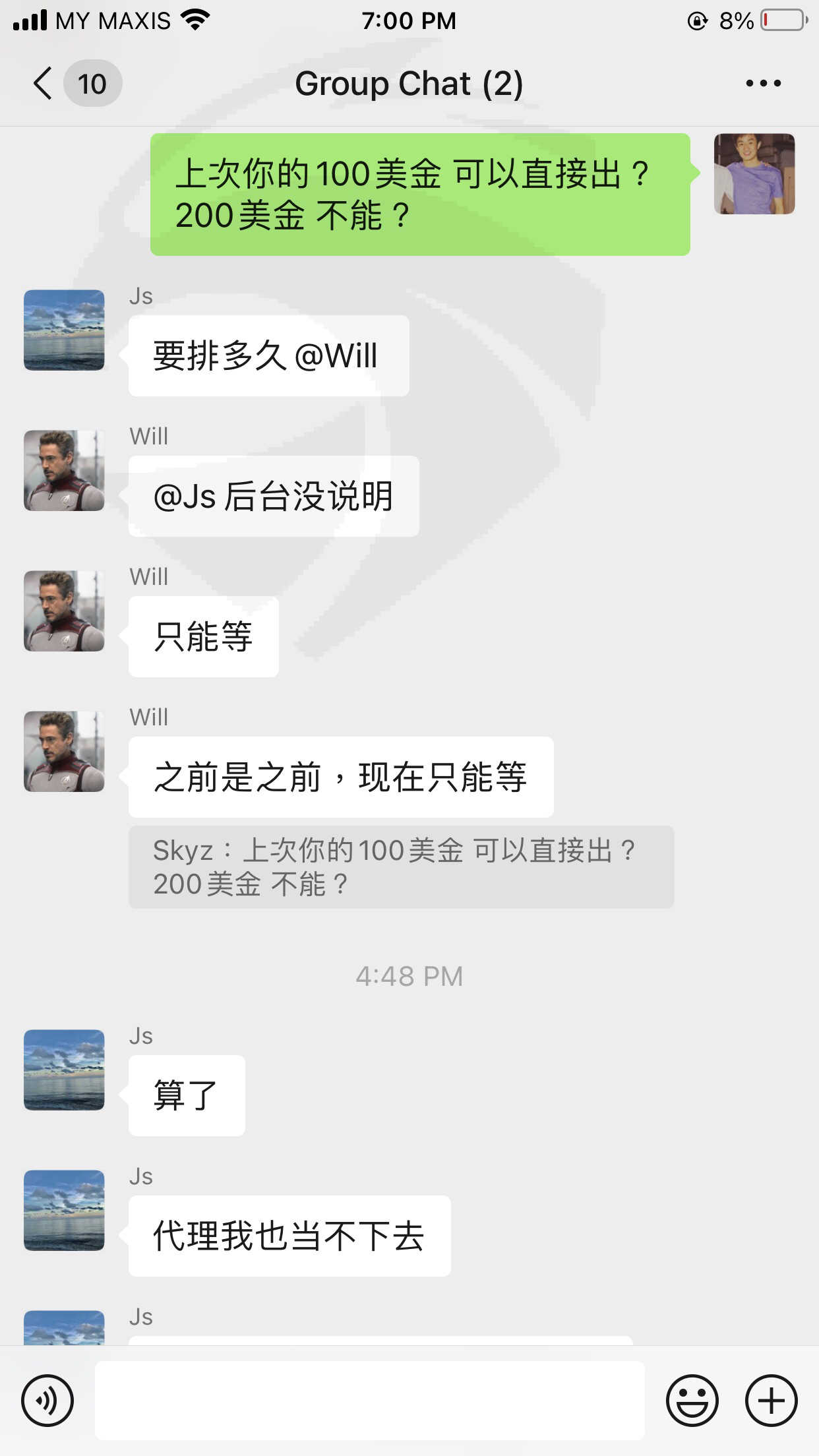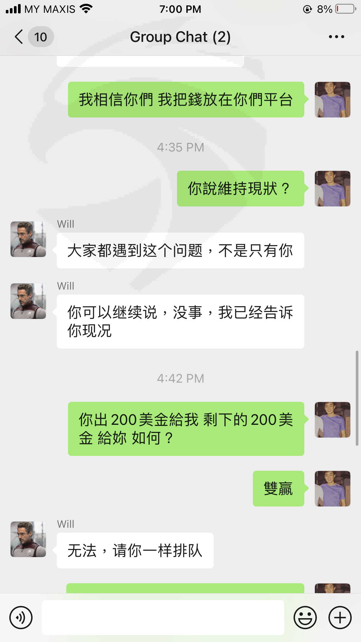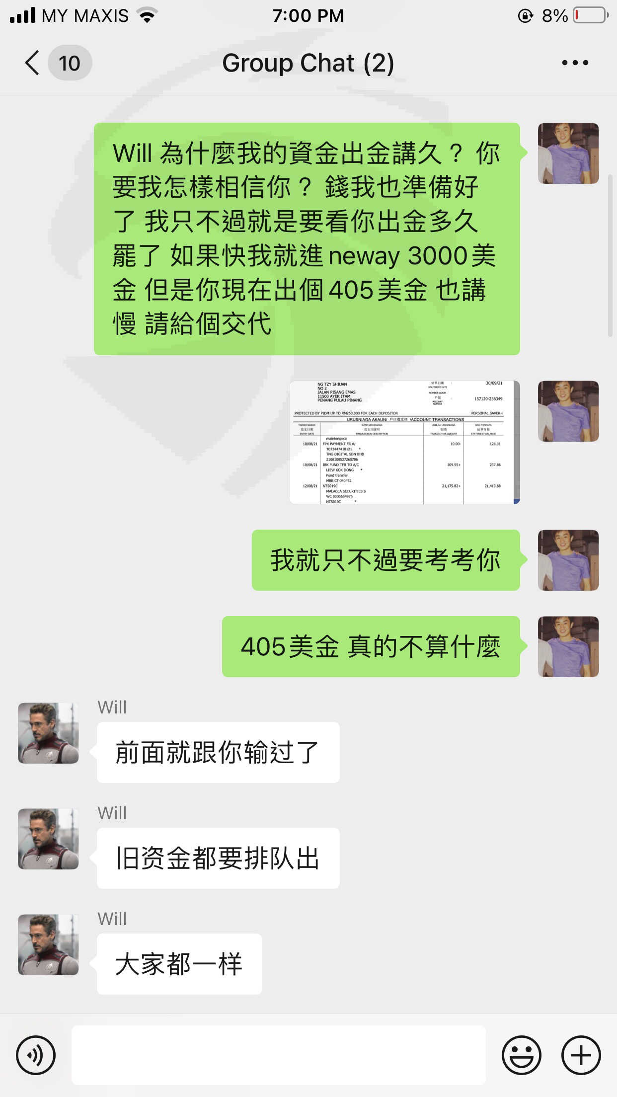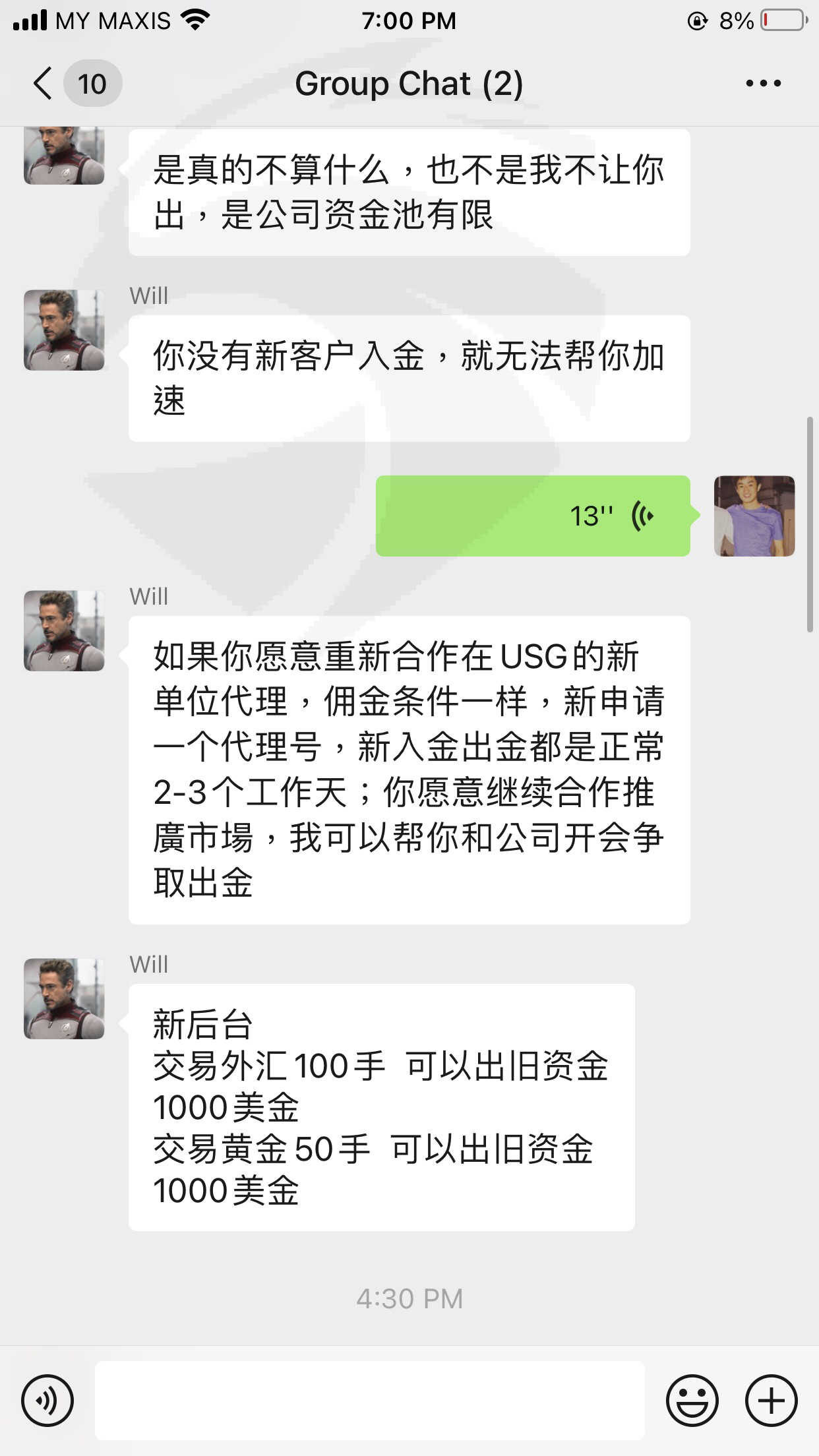 I withdrawn 405USD from my account, it passed two months and I still haven’t received my money. At first, I politely asked the customer service and the person in charge for about 10 times to fasten the withdrawal time, they replied me with their typical customer service script with no action taken. The person in charge said if I wish to fasten my withdrawn process, I must introduce new customer into USGFX, this is a Ponzi scam, the whole USGFX is a scam. they cheated my 405USD