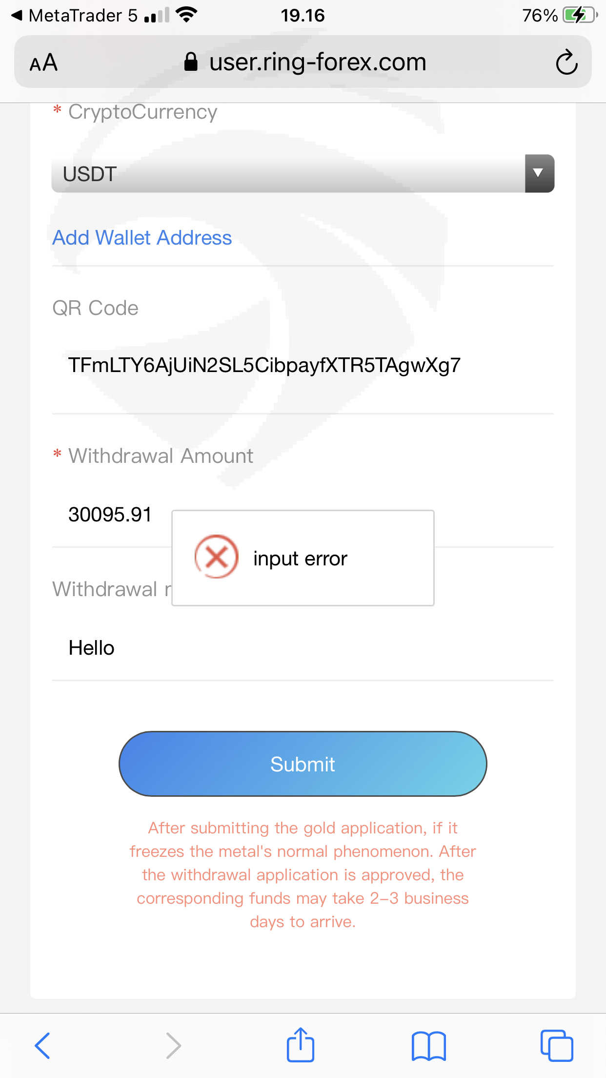 mereka akan membuka alamat untuk melakukan deposit tapi mereka menutup untuk penarikan, kembalikan saldo saya