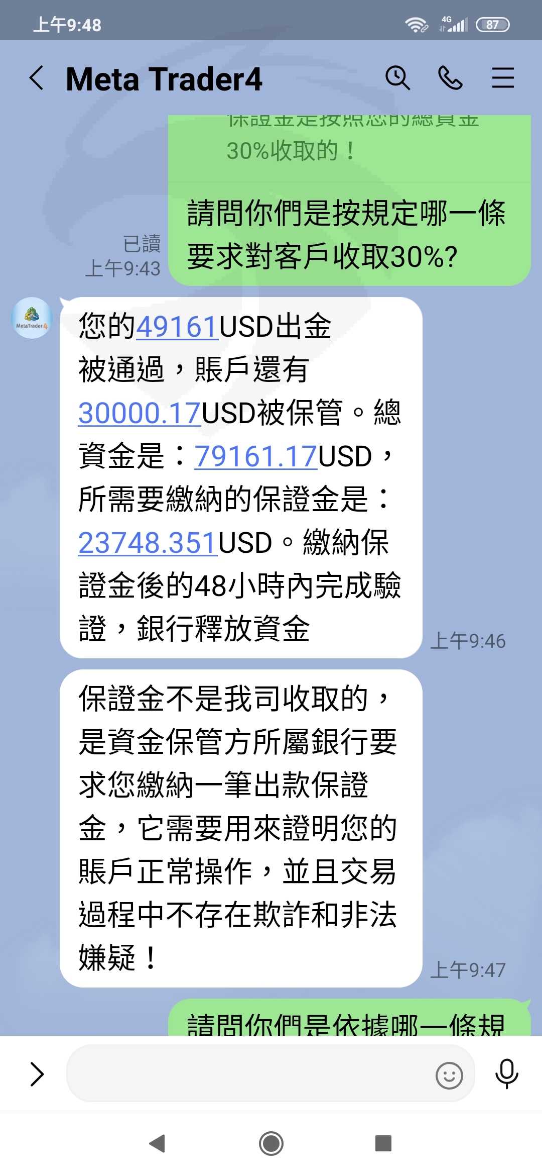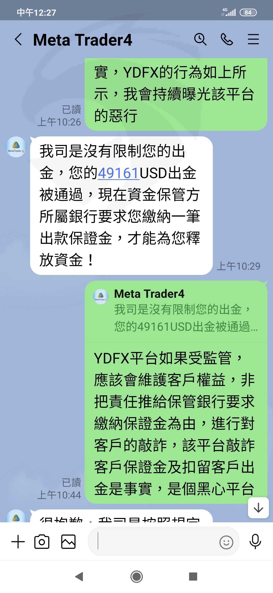 我按正常程序出金,該公司卻要繳30%保證金才能出金,YDFX違反誠信原則,敲詐客戶保證金及限制出金