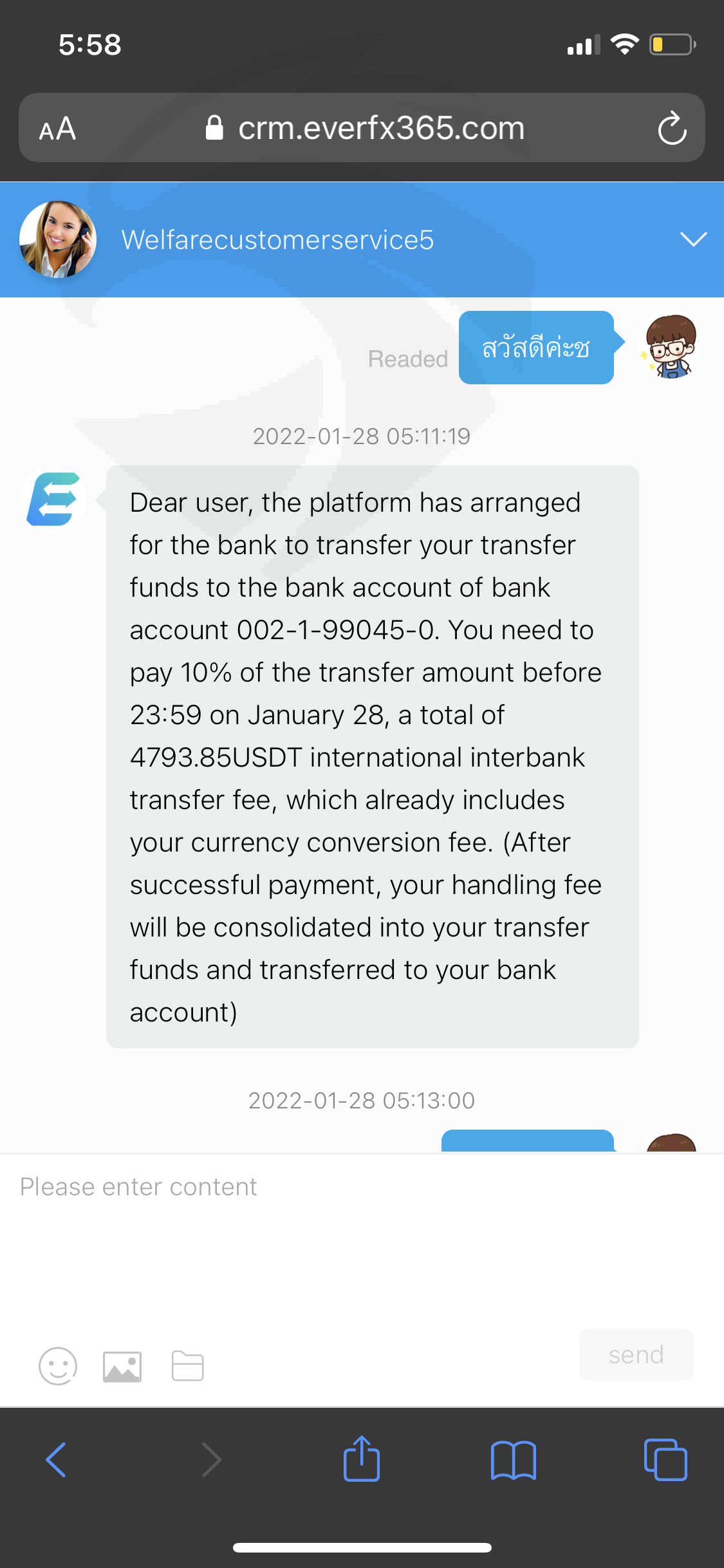 ตอนแรกบอกให้ฉันจ่าย10%จากยอดเงินที่ฉันเล่นได้ โดยต้องเติมเงินเข้าพอตเท่านั้น ไม่สามสรถหักจากเงินที่ฉันหาได้ ฉันก็หามาจ่าย เสร็จแล้ว พอฉันต้องการถอนเงินออกทั้งหมดก็บอกว่าต้องเสียค่าภาษี 12% ฉันก็หาเงินมาจ่าย เสร็จแล้วตอนนี้บอกให้ฉันจ่ายค่าธรรมเนียม ซึ่งฉันขอให้หักจากเงินที่ฉันต้องได้ เขาบอกไม่สารมารถทำได้ ต้องจ่ายเองเท่านั้น ฉันขอยกเลิกก็ไม่ได้ ขอเปลี่ยนธนาคารก็ไม่ได้ ตอนนี้เงินของฉันก็ยังไม่ได้ และก็ยังไม่ถูกคืนเข้าพอตของฉันเลย ยอดทั้งหมด 47132.00 USDT
