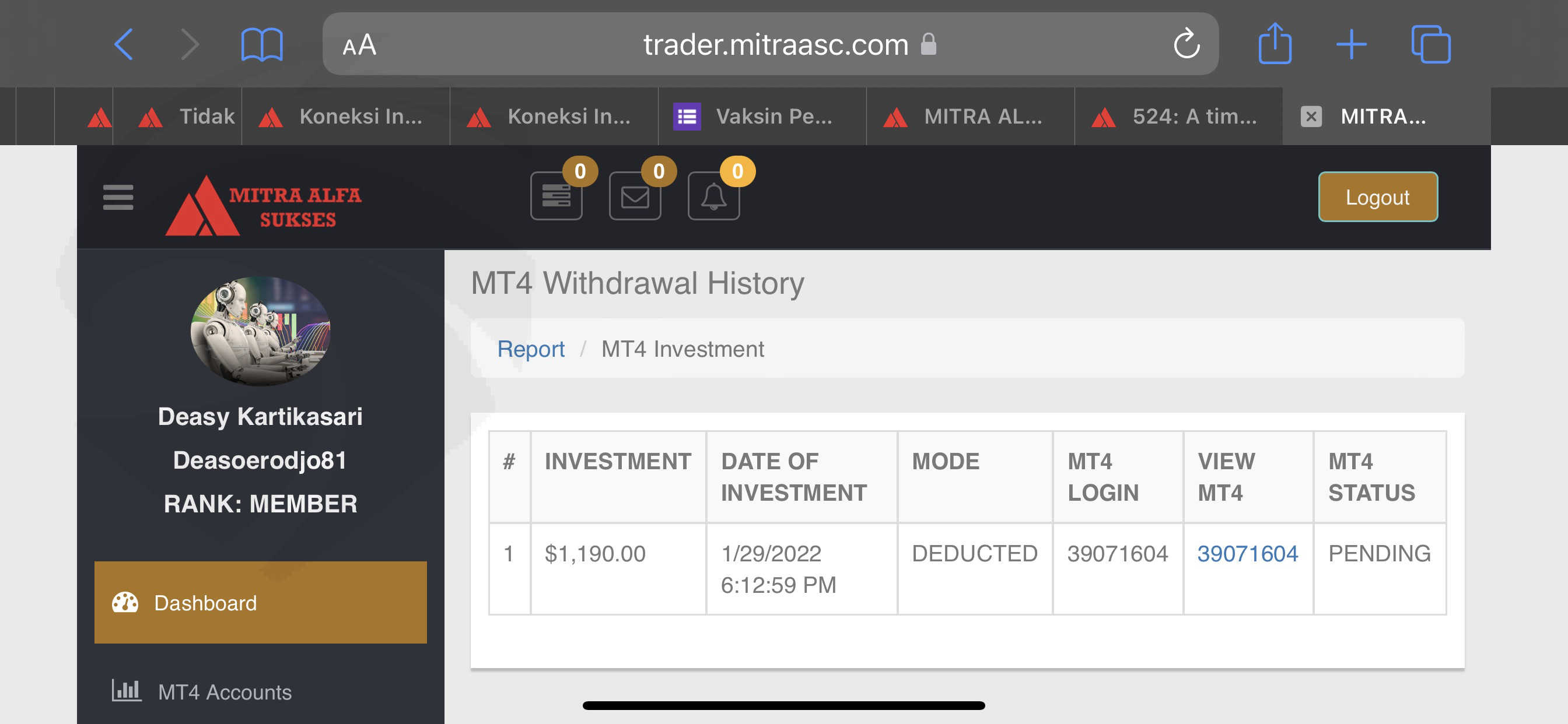 tidak dapat menarik dana